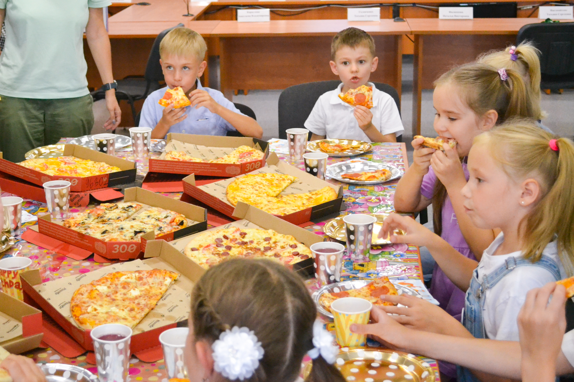В завершение дети подкрепились вкусной пиццей и тортом.